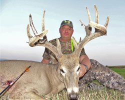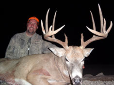 WHITETAILS Big Buck Outfitters, Inc. areas hold lots and lots of whitetails. A hunter should expect to see hundreds of deer on a hunt, sometimes in a single field in a single evening. The average whitetail scores130 to 150. The largest whitetail harvested in the past was over 190. Big Buck Outfitters, Inc. targets whitetail bucks in the 4- to 6-year range. Most mature bucks have an extra point or two, with drop tines and split tines not uncommon. Big Buck Outfitters, Inc. is confident that on a standard hunt every client should see whitetail bucks in the 120- to 150-class range.