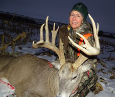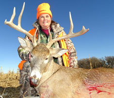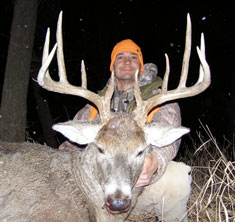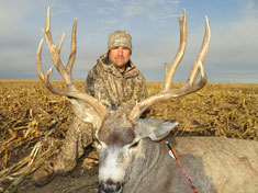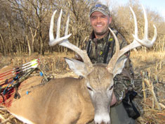 KANSAS Everyone knows Kansas has a reputation as a big buck producer. For years, Big Buck Outfitters, Inc. searched for a good Kansas hunt. It was not an easy task. Kansas is a big state and there are not a lot of places in Kansas where you can consistently grow big buck deer. But, we finally found an area with a combination of exceptional genetics, fantastic feed, and limited access and land ownership patterns that will allow consistent production of great deer. Trophy quality to expect on this hunt is 140-160" with upper-end bucks possible. We have harvested 170-200"+ bucks in the area in the recent past. This is a great place to archery hunt during the rut, and there is generally some limited rutting activity at the beginning of the rifle hunt. Big Buck Outfitters, Inc. tries to target specific bucks for the most part, but we also hunt likely looking sign and topography. Archery hunting is the month of November, and rifle hunting is roughly the first two weeks of December -- although the season dates do and will change each year. Please visit the Kansas Department of Wildlife and Parks' website for specifics at www.kdwp.state.ks.us. Kansas has recently instituted a preference point system for their deer license draw, which allows for planning and some certainty of drawning a license.